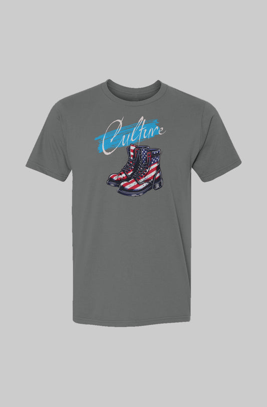 USA Culture Work Boots T-Shirt | American Made Ringspun Cotton | Blue Collar Tee